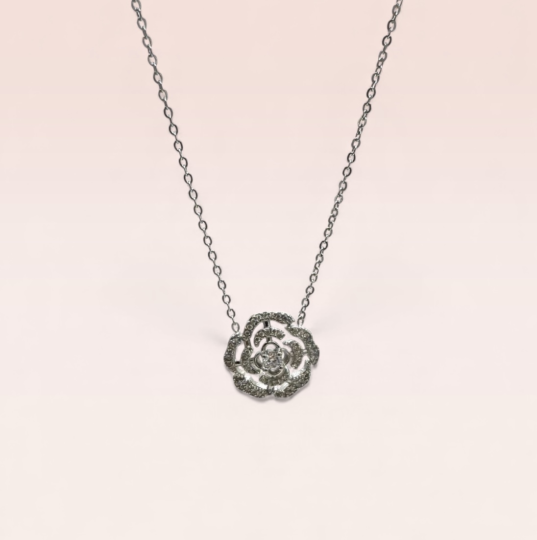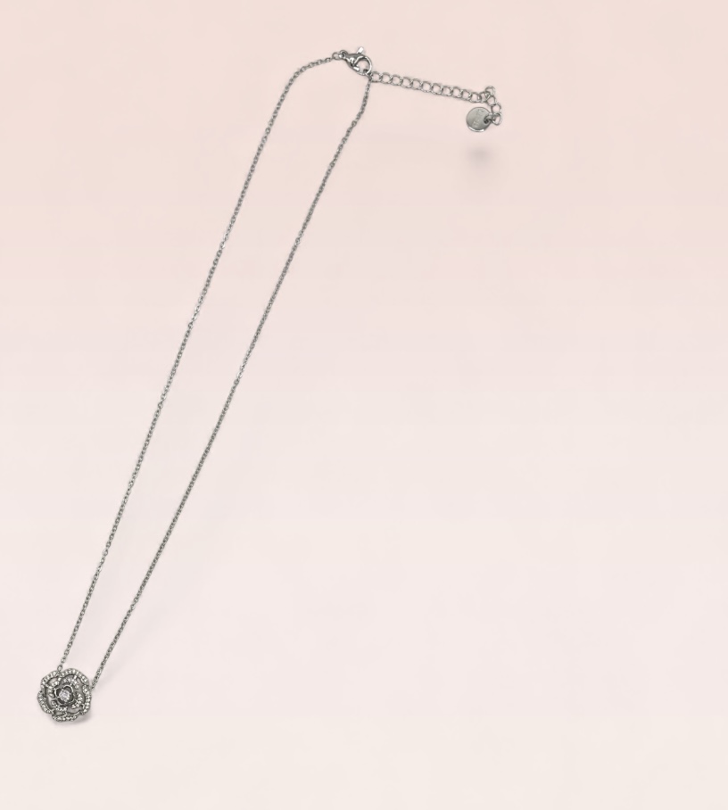 Collier camélia argenté